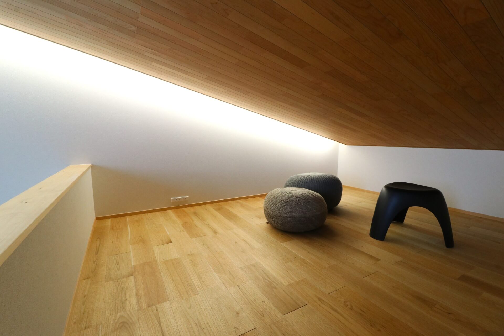 収納や子供の遊び場としても活躍するロフト。プロジェクターを設置して、リビングでおうち映画館を楽しめます。