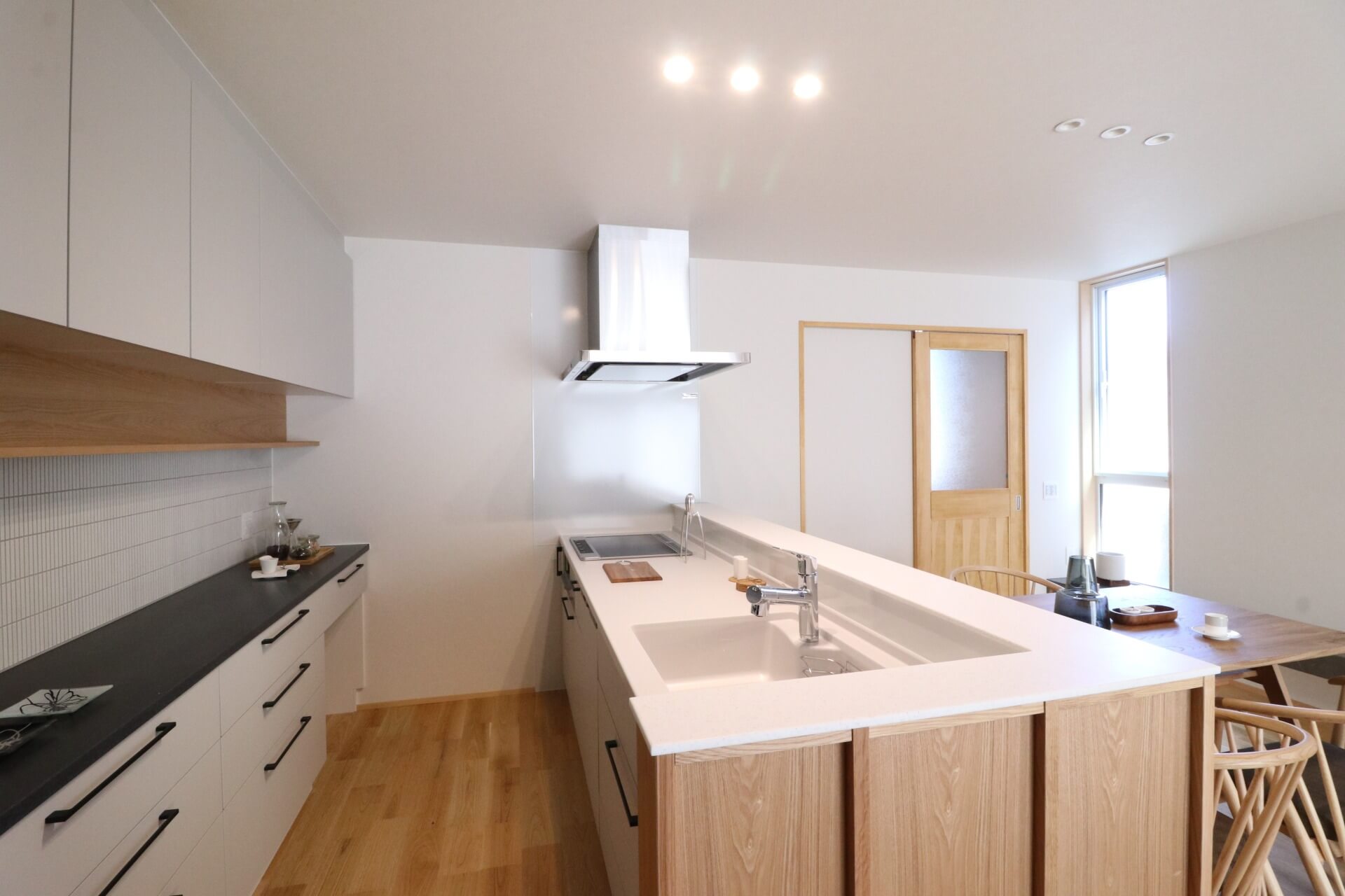 手元が隠れる高さのカウンター。ダイニングやリビングからも、すっきりとした印象に。
